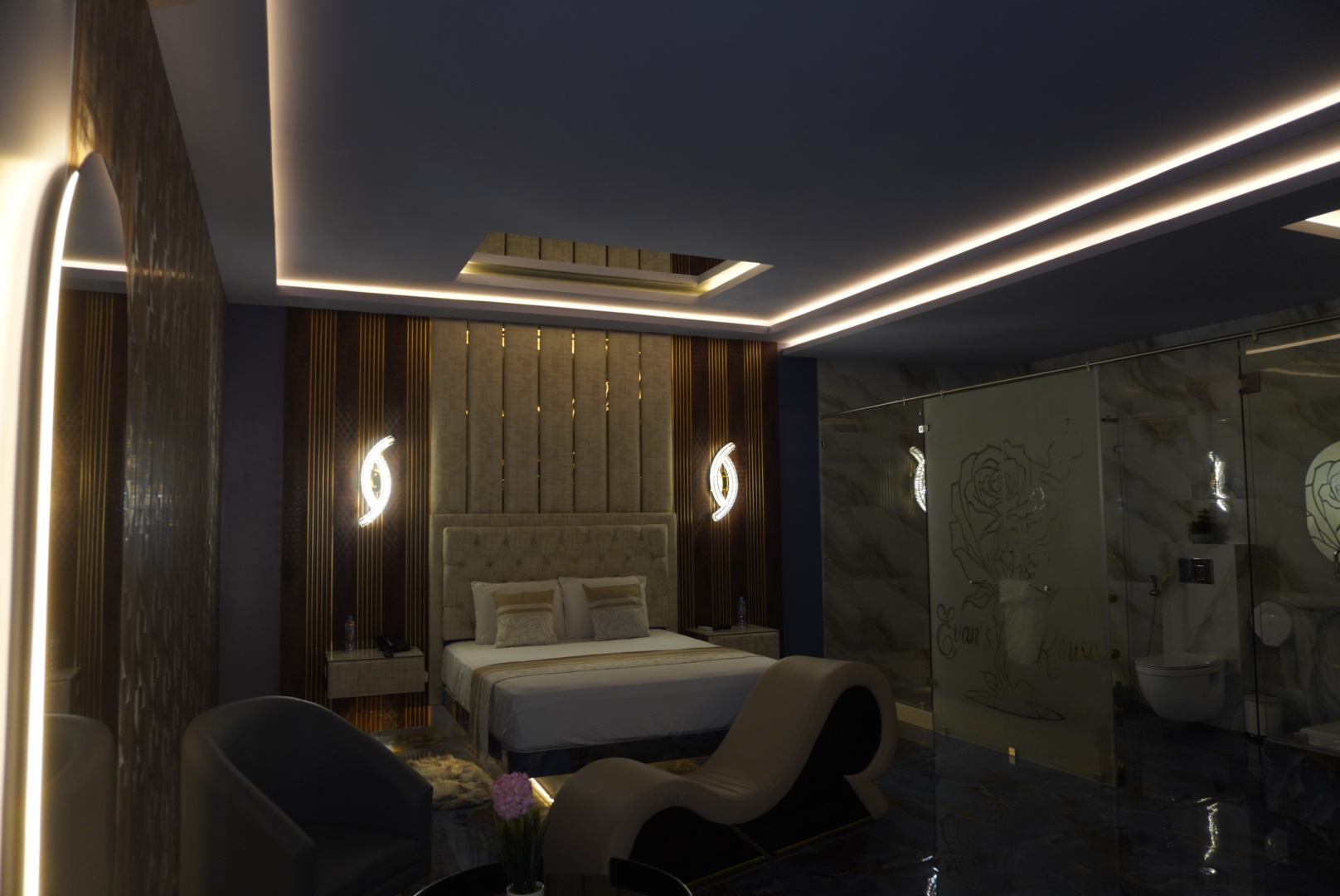 "La sublimidad y majestuosidad solo la encuentras en Motel Evan's Rouse". Ubicado estratégicamente para asegurar la máxima confidencialidad, redefinimos el concepto de los moteles en Manta. Nos especializamos en brindar habitaciones de lujo por horas para parejas que buscan escapar de lo cotidiano. Nuestras Suites VIP con jacuzzi privado ofrecen un nivel de sofisticación y limpieza de grado hotelero que nos distingue de cualquier otro hospedaje en la ciudad.