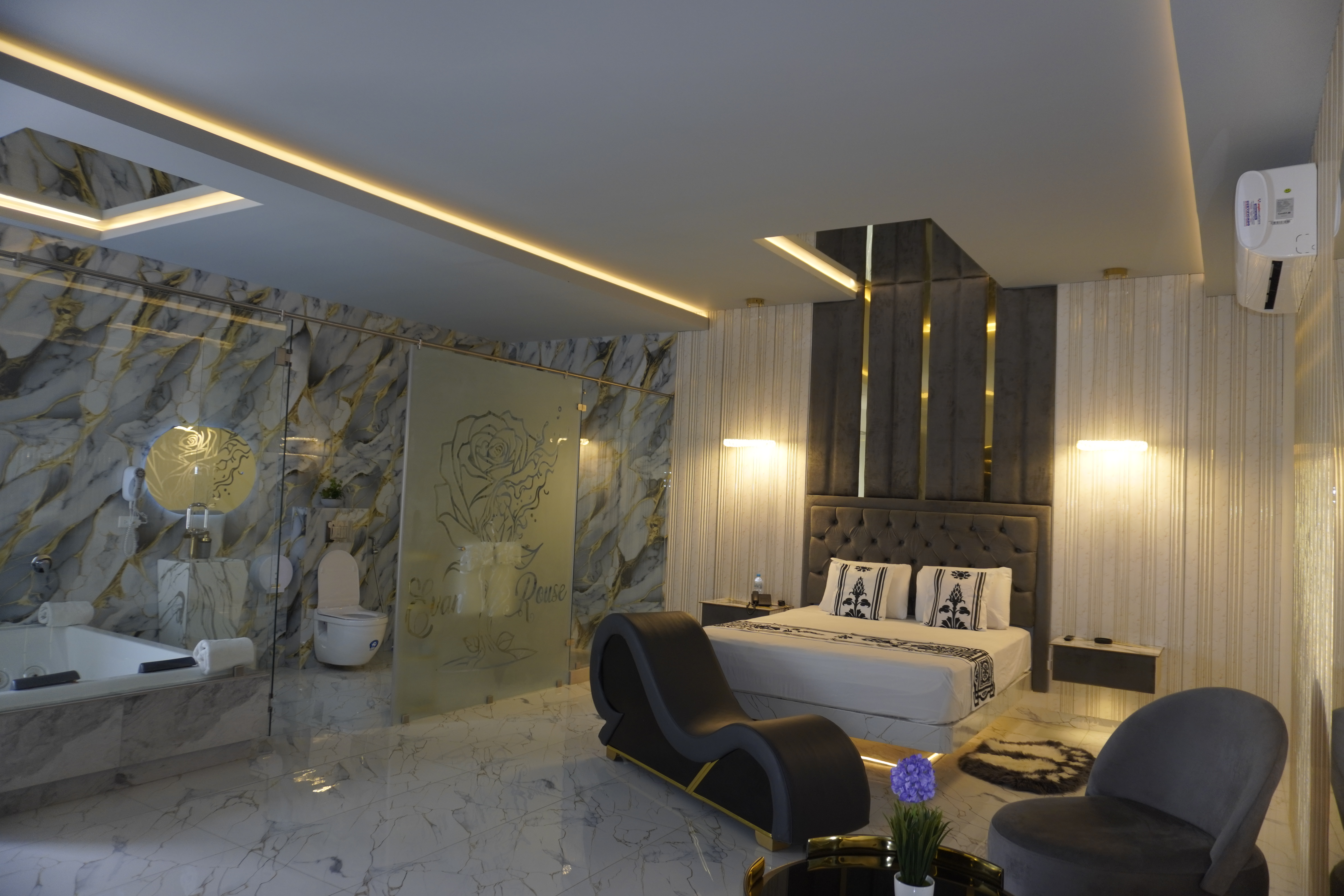"La sublimidad y majestuosidad solo la encuentras en Motel Evan's Rouse". Ubicado estratégicamente para asegurar la máxima confidencialidad, redefinimos el concepto de los moteles en Manta. Nos especializamos en brindar habitaciones de lujo por horas para parejas que buscan escapar de lo cotidiano. Nuestras Suites VIP con jacuzzi privado ofrecen un nivel de sofisticación y limpieza de grado hotelero que nos distingue de cualquier otro hospedaje en la ciudad.